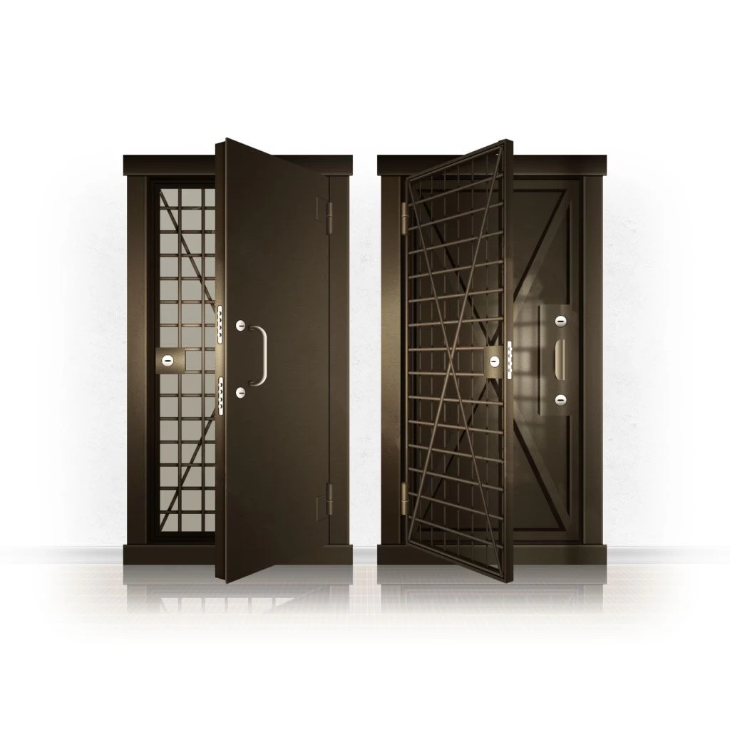 Металлические двери КХО и КХН представляют собой входные блоки, обладающие высоким уровнем взломостойкости и состоят из трех основных элементов: усиленного каркаса, сплошного металлического полотна и решетчатой двери. Дверной блок изготавливается из стального уголка 100*100 мм. Места крепления блока к стене цементируются и закрываются стальными наличниками шириной 40 мм. Крепеж заходит вглубь стены на 80 мм. В конструкции внешней створки монтируются ребра жесткости, для обшивки используется сталь толщиной не менее 3 мм. Внутренняя решетка изготавливается из прутка диаметром 16 мм. Размер ячеек решетки должен составлять не более 15 на 15 см. В точках пересечения прутья надежно приваривают друг к другу. В КХО и КХН необходимо поддерживать определенную температуру и влажность. Для этого внутреннее пространство глухой двери заполняется теплоизоляционным материалом, а по периметру двери приклеивается уплотнитель. Такие двери оборудуются замками с повышенным уровнем взломостойкости. Специализированные двери КХО и КХН в Усть-Катаве могут быть оснащены сигнализацией, в конструкции могут быть проушины для навесного замка и элементами для опечатывания. Если идет речь о двери в комнату хранения оружия, в створке оборудуется окно для выдачи оружия и спец. средств, которое накрывается стальной дверцей.